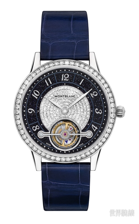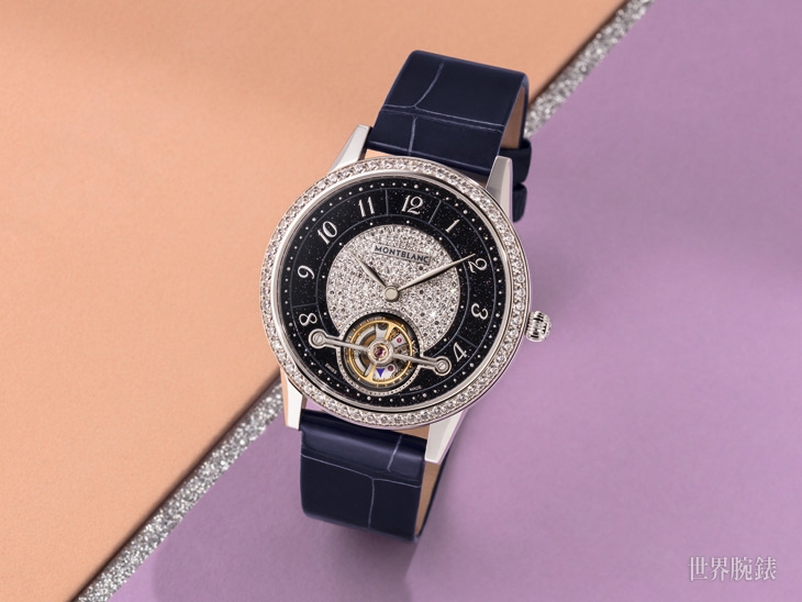 ▲ ExoTourbillon Slim限量款錶徑達38毫米,厚度僅有9.37毫米,搭配略呈弧形的一體式錶耳和萬寶龍星形美鑽的洋蔥形錶冠,是為高雅的現代女性量身打造。