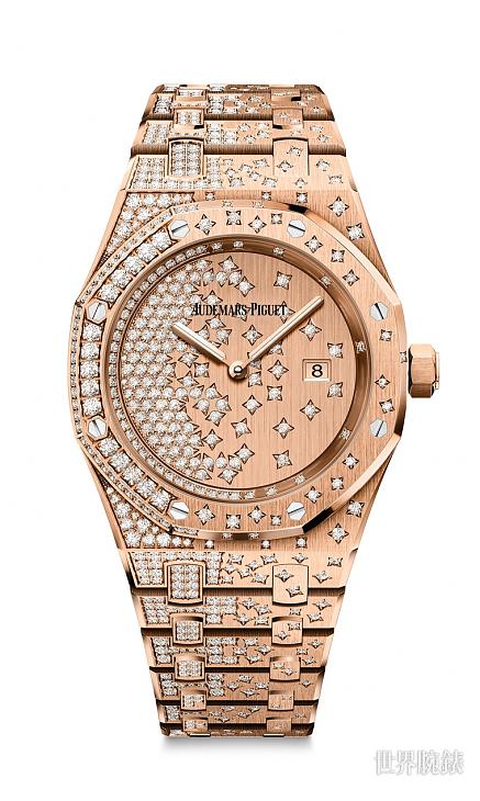2017年,愛彼推出全新的皇家橡樹女錶,一顆顆絢麗的美鑽構成獨具一格的寶石鑲嵌外觀,如瀑布般,從面盤和錶圈湍流到鍊帶上。