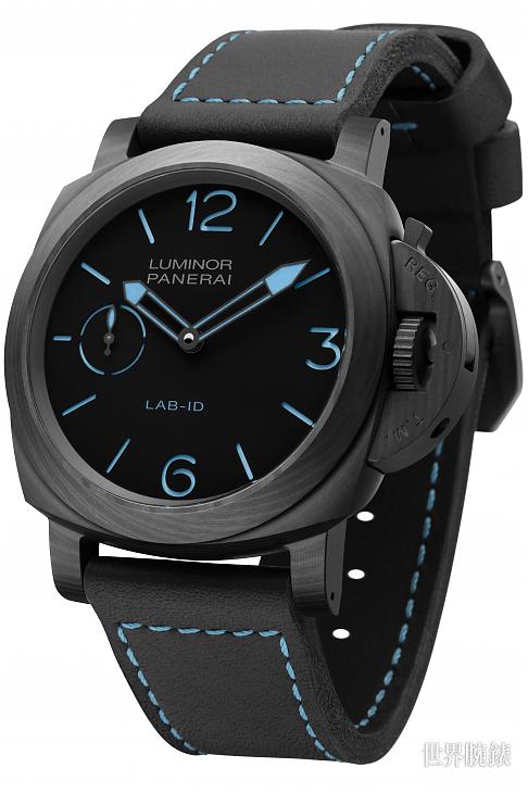 面盤的部份,它採用沛納海研發的經典三明治結構,並且覆上藍色Super-LumiNova® 夜光塗層,令讀時變得清晰而容易。此外,創新物料不只運用於錶殼,這次沛納海也其運用於面盤上。LAB-IDTM PAM00700的錶盤鍍有納米碳管鍍膜,這也是此材質首次被放在面盤上。納米碳管鍍膜是一種經過特別研發的塗層,它能吸收光線並將反射減到最低,還能賦予面盤格外深沉的極黑色,與沛納海經典的藍色時標及指針形成鮮明對比。值得一提的是由於上述這些使用創新材質的特色不能印刷或壓印面盤,因此所有圖案數位都是直接成形於經過雙重抗反射處理的水晶玻璃鏡面上。