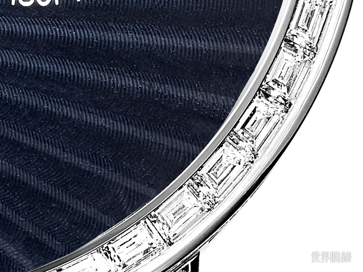 ▲ 伯爵將其中一個經典元素——珠寶工藝運用到錶款上。錶殼、面盤及錶扣鑲嵌長方形及明亮式切割鑽石。