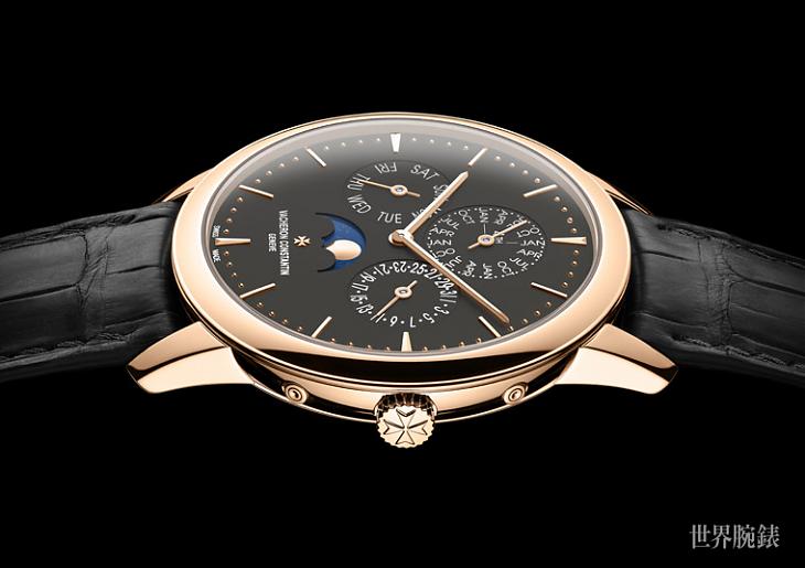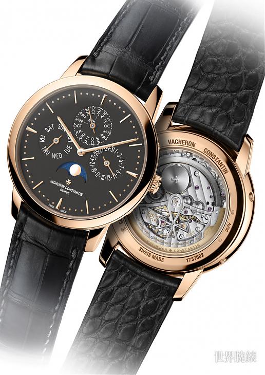 江詩丹頓2017年日內瓦國際高級鐘錶展(S.I.H.H.)新款Patrimony萬年曆玫瑰金款採用全新岩灰色面盤。這款搭載了品牌著名的1120 QP機芯,其超薄特徵展現了Patrimony系列的一貫優雅和纖薄。