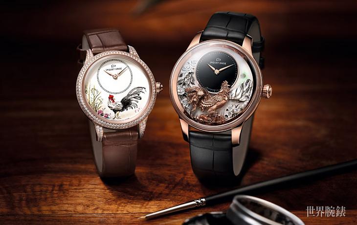雞年即將來臨,雅克德羅(JAQUET DROZ)推出四款由藝術工坊精誠合作打造的腕錶,向中國與雅克德羅之間的歷史淵源致敬。因為自品牌創立以來,雅克德羅便從未停止旅行的腳步。雅克德羅曾遍訪歐洲王廷,也是最早進入中國的品牌之一,18世紀時就曾在紫禁城展示其作品。可以說,我們能從雅客德羅的歷史中找到品牌對中國文明的熱愛。此外,在北京故宮所展示的歷史錶款,也能見證著雅克德羅與中國之間的悠久淵源。就在雞年到來之際,JD藝術工坊的工匠大師在其標誌性的時分小針盤上(Petite Heure Minute),打造出兩只全新錶款,侖錶分別推出兩個款式,致慶中國農曆新年。(更多詳細介紹...)