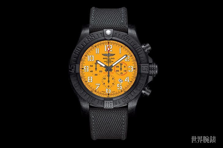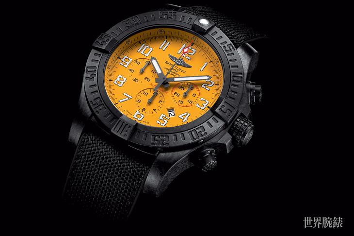 百年靈推出全新復仇者颶風12小時制腕錶(Avenger Hurricane 12H),將全球首創的超前革新材質Breitlight®用於製造錶殼。Breitlight®具有堅固無比與超凡輕盈的兩大特點,另外搭佩百年靈標誌性的黃色與黑色面盤,塑造出動感醒目的外觀。