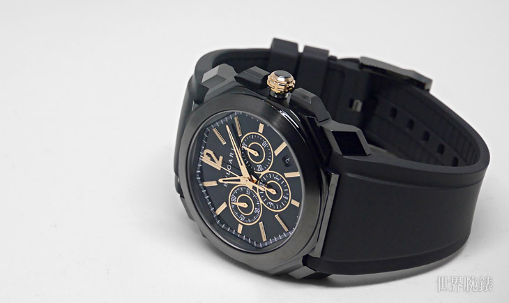 市面上不乏Genta大師的傑作,就計時錶款而言,有愛彼皇家橡樹和勞力士的迪通拿可作比較。全黑版Octo Velocissimo計時碼錶與兩者雖在本質上是出自同人之手,但在造型和定位上卻是不盡相同。全黑版Octo Velocissimo計時碼錶少了一些運動錶風格,更貼近熟男紳士的優雅風格,整體的美感上有Octo自身的獨到之處。