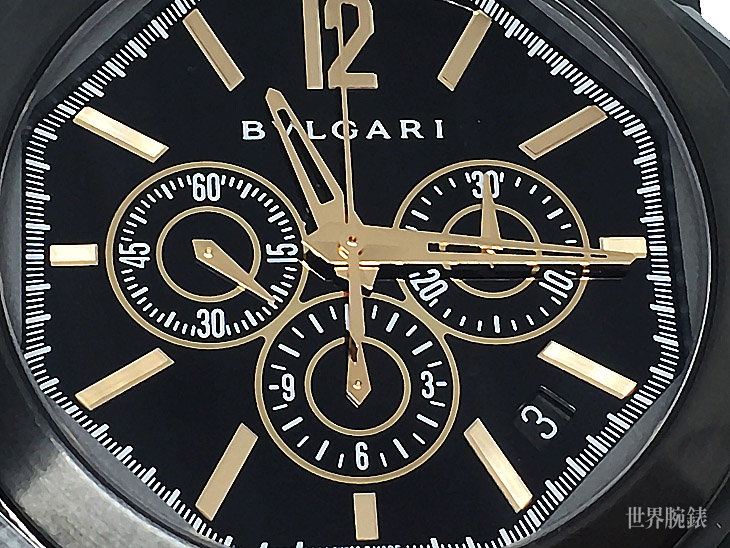 計時碼錶向來是許多玩家最愛的功能之一。雖然說計時功能在日常生活中較少派上用場,但相較基本的三針顯示,這款計時碼錶面盤的下三眼佈局讓人感覺到更高階的製錶工藝,協調一致的錶盤格局,讓各種計時資訊均勻地排列在面盤上,加上金色時標、指針搭配起來更是點睛,寶格麗同樣再以金色勾勒出錶盤線條,效果突出。