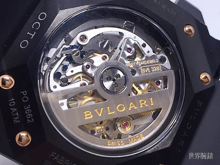 ▲ Octo Velocissimo搭載BVL 328機芯,具導柱輪計時整合結構,飾以珍珠圓點打磨、日內瓦波紋及倒角拋磨處理。