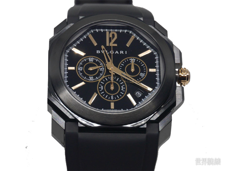 寶格麗(BVLGARI)的Octo系列出自一代鐘錶設計大師——Gerald Genta之手,將獨特的八角造型運用到錶殼設計上,多重菱角刻面形成獨樹一格的視覺效果。而在2016年發表的Octo Velocissimo則是設計成全黑版,為極具陽剛魅力的計時碼錶加入巧妙的變化。金色時標與指針更是襯托出面盤的極致深黑,重新引領了義式美學中的黑色風潮。