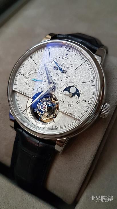 「腕錶的工藝讓人著迷!」挑選腕錶時最注重工藝的Howard,收藏了朗格、愛彼、芝柏錶、勞力士等知名品牌的錶款,深知這些都是凝聚了專業製錶師的心血,他們以高超技法與無比耐心,製作出的成品彷如稀有而精緻的藝術品,令人大開眼界。因興趣使然,平時除了經常看腕錶相關雜誌或文章,在空暇時也會去錶店晃晃,「因公司離一家經營相當久的頂級鐘錶店不到一公里,所以三不五十就會過去串門子或看看錶展。」這次他要和大家分享的愛錶,就是和錶店店長聊天時發現的稀有珍寶——限量180只的JAEGER-LECOULTRE積家大師系列萬年曆圓柱游絲陀飛輪腕錶。