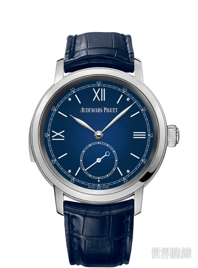 如今,愛彼推出的這只全新的Jules Audemars三問錶雖有著簡約的外觀,但實際上卻一點都不簡單。事實上,Jules Audemars三問錶的外表一直以來都是以極簡的風格現身, 因此今天看到這只全新低調簡潔的Jules Audemars三問便也不用太過訝異。全新Jules Audemars三問錶以PT950鉑金材質打造,搭載2944手上鍊機芯,該枚機芯由354枚零件組成,震頻為3赫茲,動力儲存長達72小時,並具備腕錶三大複雜功能之一的三問功能。這是愛彼與洛桑學院聲音工程部個共同打造的,一個獨特的音響共鳴系統,敲擊聲清亮響翠,共鳴也極好。此外,它的面盤也是一項很討喜的特色。煙灰藍色的琺瑯面盤搭配乳白色軌道式刻度,且搭配白色琺瑯羅馬數字與時標以及白金指針。面盤的6點鐘位置則配有小秒盤,凹入式設計與軌道刻度外圈益增美感,直線形指針末端以環形收尾,細微之處盡顯精美鐘錶之精髓。
