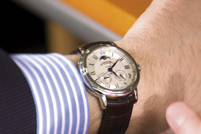 ▲ 義大利語"Maestro"指藝術生涯達到頂峰的大師,Elie當天為我們介紹的Maestro手錶,以月相顯示配合寶璣式指針,設計優美。