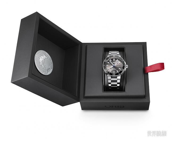 ▲ORIS Hammerhead限量錶,附有一個路氏雙髻鯊徽章的特殊錶盒。