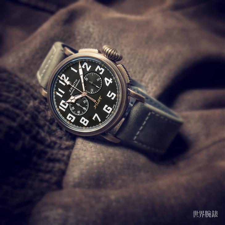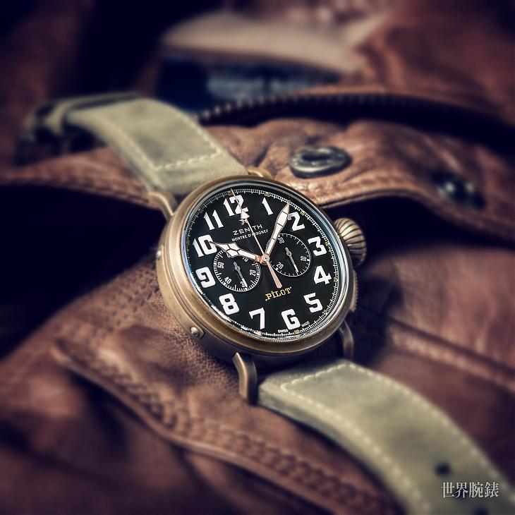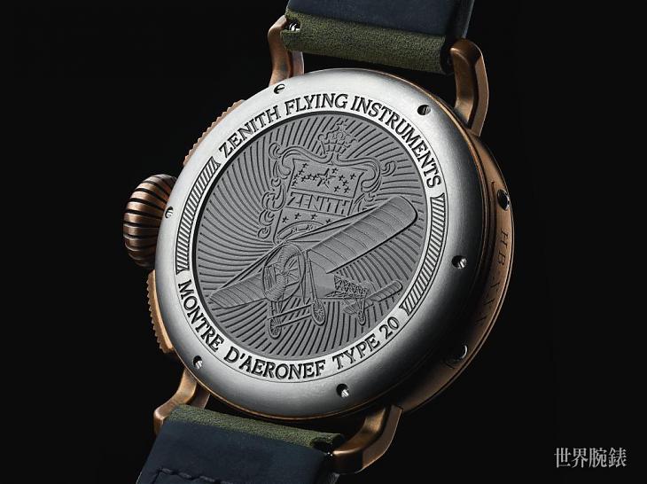 堅固的鈦金屬底蓋上則刻有路易.布萊里奧(Louis Blériot)於1909年戴著真力時腕錶飛越英吉利海峽時駕駛的飛機圖案,並飾以真力時的飛行儀器標誌。一方面是為了向品牌與航空的歷史淵源致敬,另一方面也是呼應品牌從這位傳奇法國飛行員身上所獲得的靈感。最後,一如前言所說,Pilot Extra Special計時碼錶特地採用卡其綠油蠟絨面皮革錶帶搭配米色縫線與橡膠襯裡,並以鈦金屬針式錶扣牢牢固定。