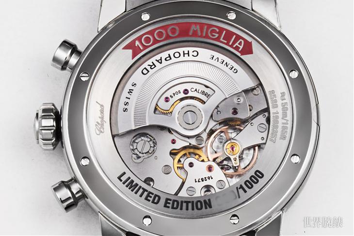 ▲46mm的錶殼對28.8mm的機芯來說還是有點大了,因此底蓋外圈的空白不小,不過在這裡印上了Mille Miglia的Logo倒是神來之筆。不鏽鋼款限量1,000只,另有玫瑰金款限量100只。