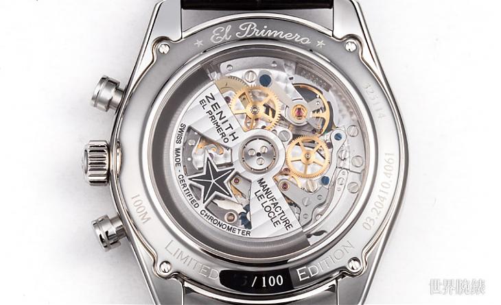 ▲錶款搭載傳奇的高震頻機芯El Primero,這款的型號是4061。聯名款並沒有在錶背(自動盤、透明底蓋)做其他特殊設計,只有在邊緣刻上了限定字樣和流水編號(限量100只)。