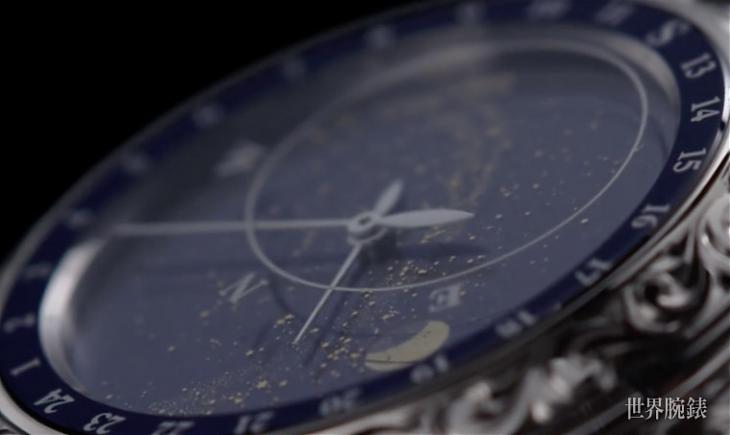 錶背是Ref.6002非常吸睛的天文功能舞台,展現出恆星時間與天體星空圖,透過一組相連的藍寶石面盤驅動,上方利用一個279齒的齒輪重現月亮運行的軌跡,下方則是運用一個356齒的齒輪展示了銀河的模樣,兩相搭配可以看見南/北半球抬頭所見的星空(可與品牌訂製南或北半球天空),打造出個人的微型天文台,體驗無法言喻的天文趣味。
