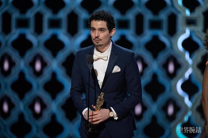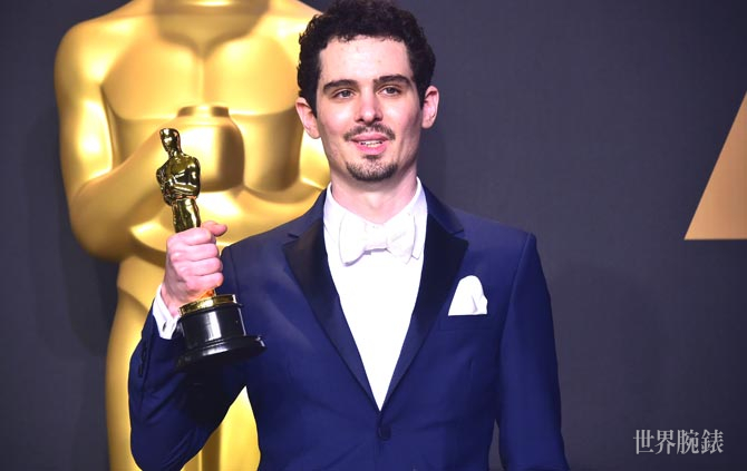 ▲史上最年輕的金獎導演米恩查澤雷(Damien Chazelle)佩戴積家超薄大師征戰奧斯卡,並成為當晚最大贏家!