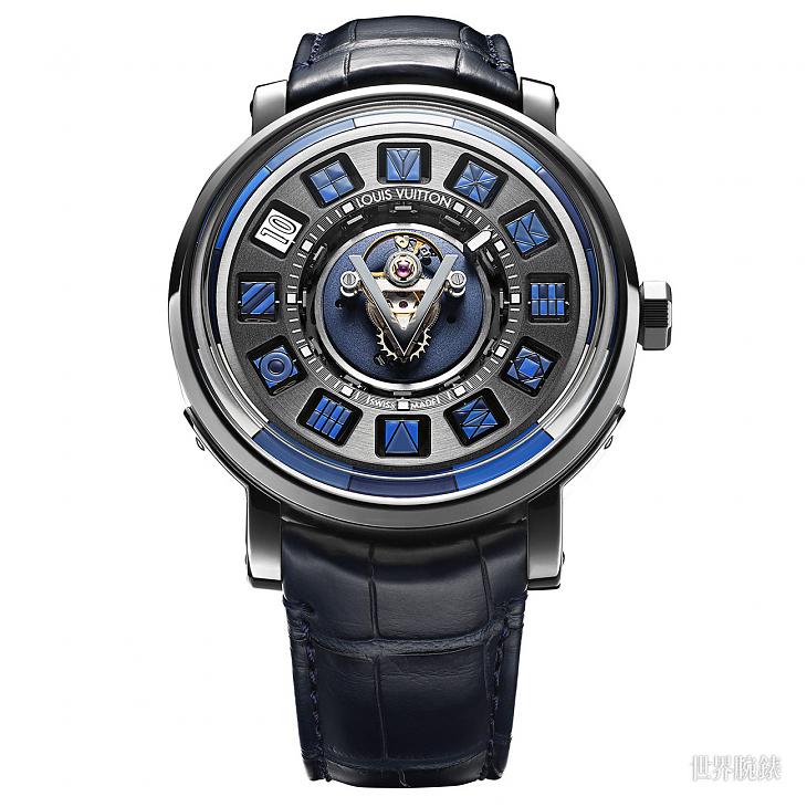 路易威登(LOUIS VUITTON)一直以來以旗下的Trunk訂製箱聞名,工藝師還會特別使用壓克力顏料為客人繪製上專屬圖騰,為顧客打造專屬的Trunk訂製箱。而到了2014年,品牌首次推出Escale系列錶款,即是以Trunk訂製箱上繪製的繽紛色彩為靈感來源。如今,來到2017年,路易威登再度將這些繽紛色彩的設計注入到品牌旗下辨識度頗高的Spin Time錶款中,推出全新Escale Spin Time陀飛輪腕錶。這只腕錶延續了了Spin Time錶款的新奇顯示方式,不過跟以往我們看到Escale錶款的繽紛色彩不同,這只全新Escale Spin Time陀飛輪腕錶只以藍色跟灰色這兩種顏色作為設計主題,儘管如此,仍舊是很是吸睛。