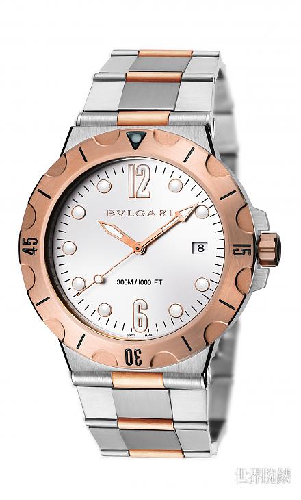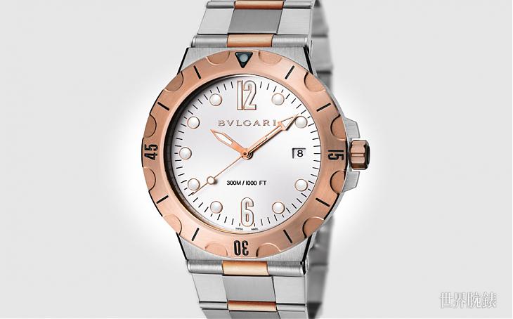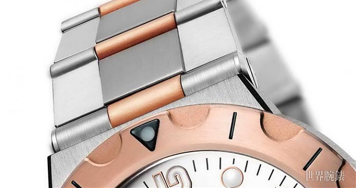 ▲雙色玫瑰金的搭配在寶格麗的巧手打造下,讓Diagono Scuba遊走在運動時尚與優雅個性之間,賦予潛水錶新面貌。