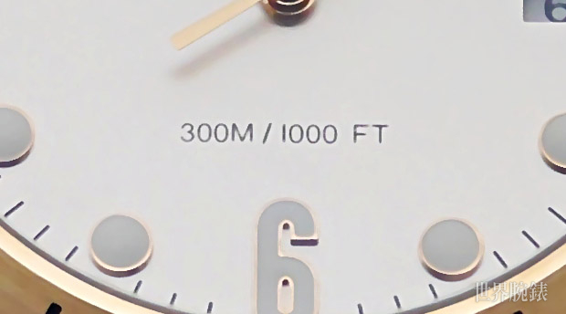 ▲面盤6點鐘位置明顯標示Diagono Scuba作為一只專業潛水錶應有的潛水深度。