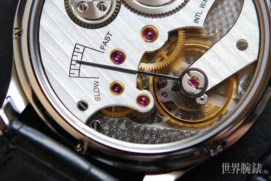 我們都希望手錶能永遠走時精準,對於手錶運作時間久了造成的誤差值,這些年各品牌在機芯研發上也儘量做到將差距縮至最小。以每天86400秒來算,每天誤差50、60 秒,已經是極小的誤差數值;但是累積一週、一個月的時間下來,已經無法稱之為精準的計時工具。因此必須透過可調整走時快慢的零件,將機芯的準確度控制在一定的範圍。有鑑於此,IWC創辦人Florentine A.Jones在1872年時打造品牌首只自製機芯Jones Caliber瓊斯機芯時,隨之附上品牌的快慢針裝置發明,因此快慢針又名瓊斯針。出自IWC的瓊斯針是比一般快慢針要長三倍的延長式快慢針,從平衡輪夾板上延伸至四分之三主夾板上。快慢針的長度會造成任何影響嗎?由於尾端與前端的快慢針,長度比例差距越大,微調的精密度也就越高。因此,IWC當年推出的懷錶機芯,其尾端快慢針更是長的驚人。