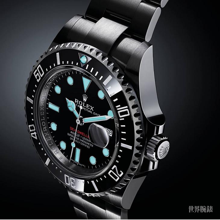 另外,Sea-Dweller的單向旋轉60分鐘刻度錶圈,讓潛水員可掌握自己的潛水和減壓時間,既精確又安全。此錶款配備由勞力士研製的專利黑色Cerachrom字圈,並以不易刮損的陶瓷製成,即使受紫外線照射也不會褪色。同時,勞力士也採用PVD(Physical Vapour Deposition,物理氣相沉積法)鍍膜技術在刻度上鍍上一層鉑金薄膜。流麗的黑色錶面裝配特大的Chromalight夜光指針與鐘點標記,皆塗上夜光物料,在黑暗中散發持久的藍色光芒,清晰易讀。