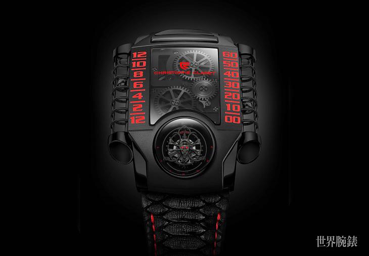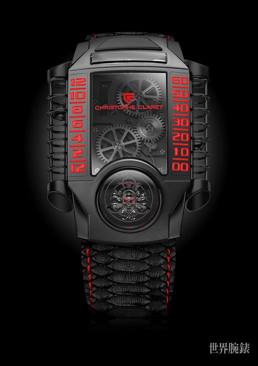 CHRISTOPHE CLARET對採用大膽科技絕不吝嗇,因此在腕錶配備經特別處理的藍寶石水晶,呼氣時會顯示張牙舞爪的骷髏圖案。X-TREM-1 StingHD另一項緊貼潮流的壞小子元素,是源源散發懾人氣息的錶帶。全新型號附送兩套由StingHD設計的錶帶,一套為黑色魟魚皮革,另一套則可由擁有人按喜好自訂。