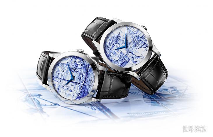 這兩款腕錶搭配的正是上述絕美的珐瑯,因此最終所呈現的視覺效果款款動人,十分賞心悅目。另外,這款腕錶皆是由18K白金打造而成,搭配由18K金製造的面盤且加上琺瑯精繪Azulejo花磚畫像。其中5089G-061飾以「太加斯河上垂釣」圖案,另一款5089G-062腕錶則飾以「今日收穫」圖案。藍寶石玻璃錶殼底蓋由鉸鍊面蓋保護,其下展現240自動上鍊超薄週年機芯的精美加工細節,機芯本身備有 22K金微型自動盤。如此精巧傑作配以黑色鱷魚皮錶帶,並由白金針扣固定。