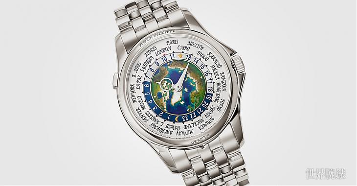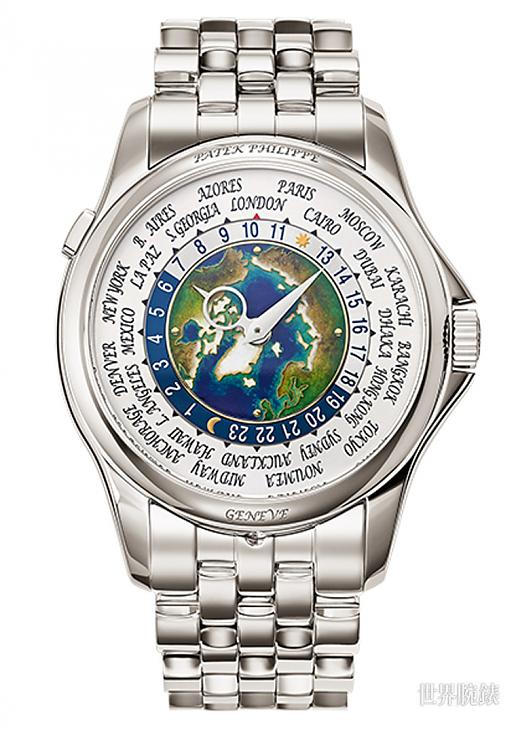 ▲PP深受市場歡迎的琺瑯彩繪世界時區腕錶推出鉑金改款,除了可由錶殼6點方向的鑲鑽辨認出材質種類外,連錶帶也一併換上金屬鍊帶。