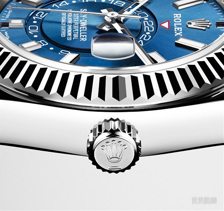Oyster Perpetual Sky-Dweller具有兩地時間顯示功能,易於讀取,且便於操作。此腕錶可同時顯示雙時區時間,即中央指針指示所在地時間,小錶盤顯示出發地時間,令Sky-Dweller讀時清晰。Sky-Dweller讓佩戴者可在旅途中調校腕錶至所需時區,同時也能明確顯示出發地時間,例如原居地或常駐工作地的時間。