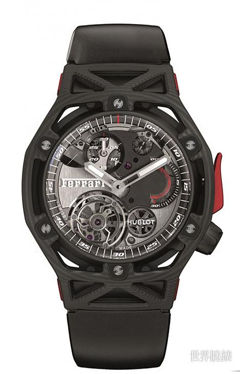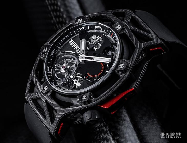PEEK Carbon聚合物碳纖維材質/HUB 6311手動上鍊機芯/時、分顯示/陀飛輪裝置/計時碼錶功能/藍寶石水晶鏡面/防水30米/錶徑45mm/限量70只/參考價:NT$ 4,251,000