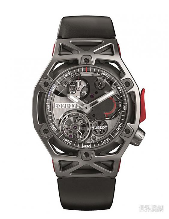 鈦金屬材質/HUB 6311手動上鍊機芯/時、分顯示/陀飛輪裝置/計時碼錶功能/藍寶石水晶鏡面/防水30米/錶徑45mm/限量70只/參考價:NT$ 3,924,000