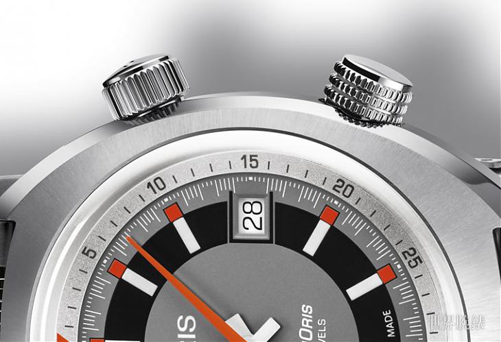 誕生於1970年的Chronoris是ORIS歷史上第一款停秒計時碼錶,名字融合了「計時碼錶」和「ORIS」獨特的造型極具時代氣息,品牌首只自產計時碼錶機芯置於其中,意義非凡。搶眼的橙色時標和指針,彰顯著它賽車腕錶的激情。始於Chronoris,發展至今日,賽車運動已經融入ORIS的品牌DNA之中,成為專業與活力的代言詞。