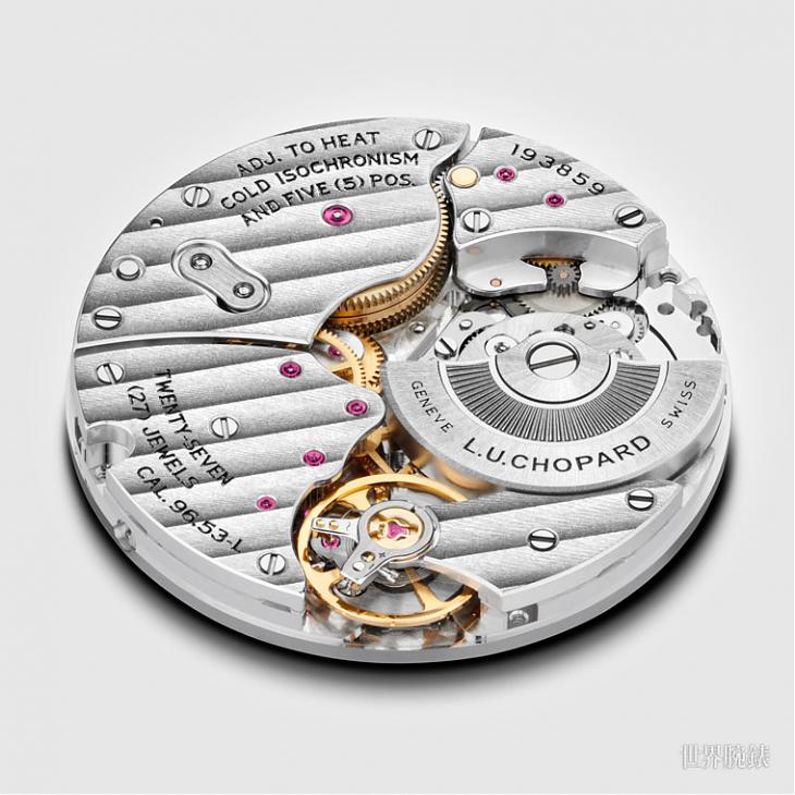 ▲L.U.C 96.53-L自動上鍊機芯具有Twin專利技術的同軸雙發條盒,能提供58小時動力儲存,同時其採用微型自動盤機制,也有效降低了機芯的厚度。