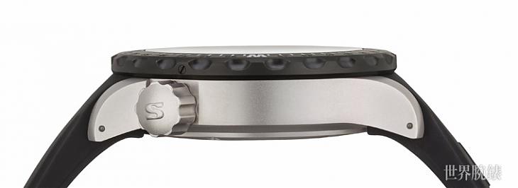 ▲錶款的專業軍用規格除了表現在棘輪錶圈的方位判別刻度,就連錶冠也設置在10點方向,有別於一般同級功能款式。