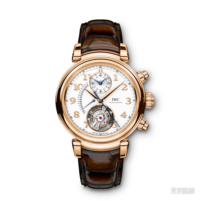 最看來看到將經典陀飛輪、計時碼錶與逆跳日期集結於面盤之上的達文西逆跳陀飛輪計時碼錶!對於這三項功能的組合,IWC的製錶師特別設計出全新89900自動機芯。這款以18K玫瑰金打造的達文西逆跳陀飛輪計時碼錶,其搭載的飛行陀飛輪令整款腕錶脫穎而出。複雜功能陀飛輪的框架被移至腕錶下方,由此省略了上方橋板。此外,它所備有的的陀飛輪掣停功能,也可對腕錶進行精確至秒的設定。當拉出錶冠時,兩個控制桿如同夾鉗一樣咬合擺輪外緣,並由此停頓平衡擺輪、輪系系統與指針機制。得益於叉桿與擒縱輪的全新幾何形狀和所應用的鑽石殼體工藝,儘管腕錶搭載了額外的複雜功能,最初上滿鏈後的68小時動力儲備依然能夠得到保持。叉桿和擒縱輪由金剛石塗層矽材質製成,使其尤為堅硬的表面具備良好的滑動性能,因而降低了摩擦與阻力,由此有助於保持最初的動力儲備。計時碼錶功能設於上方的「12點鐘」位置,如此,11小時59分鐘內的測量時間便可如同正常的時間一樣得以輕鬆讀取。借助中央秒針可讀取所測量的時間,精準至四分之一秒。除了計時碼錶與陀飛輪外,第三項複雜功能為位於面盤左側的逆跳日期顯示。日期指針在一個圓弧中從一個月的第1天向第31天推進,並在到達末尾時跳回起始點,由此顯示當前日期。在不足31天的月份或當腕錶長期未經使用時,可以透過錶冠快速推進日期,與經典的日期視窗相比,這種指針顯示方式可以為佩戴者帶來不一樣的時間感受。達文西陀飛輪逆跳計時錶的三項複雜功能也在鍍銀面盤上排列有致,計時小錶盤設於12點鐘位置,遵循IWC萬國錶一貫的佈局特色。