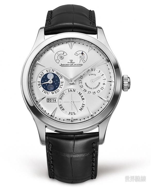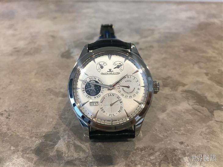 這款八日鍊萬年曆是JAEGER-LECOULTRE積家在2011年推出的改款,上一代是2005年推出的,這次修改將錶徑從41.5縮小到40mm,並且對整體的設計細節做了一些微調,讓錶款更符合現行Master系列的風格。積家旗下有幾種不同的萬年曆,這款在機能上的特徵是手上鍊+8日動力儲存,但除此之外錶款在外型上跟自動款等等其他款式相比也具備了它獨有的元素,讓它足以從眾多選擇中脫穎而出。