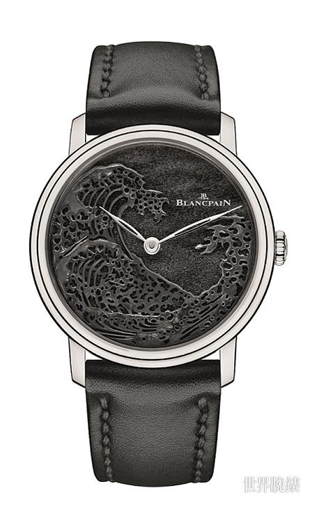 另外還有一款靈感來自葛飾北齋的神奈川巨浪名作,BLANCPAIN藝術大師工作室首次採用新穎且貼切的墨西哥銀曜石,同時融入日本Rokushō綠灰溶液鈍化處理工序。