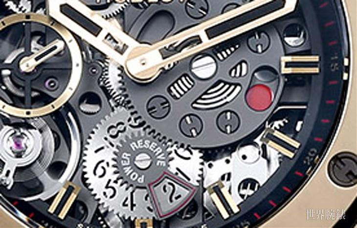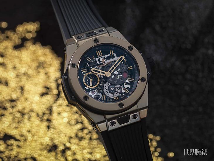魔力金材質/HUB1201手動上鍊機芯/時、分、小秒顯示/動力儲存顯示/藍寶石水晶鏡面、透明底蓋/防水100米/錶徑45mm/限量200只/參考價:NT$ 1,157,000