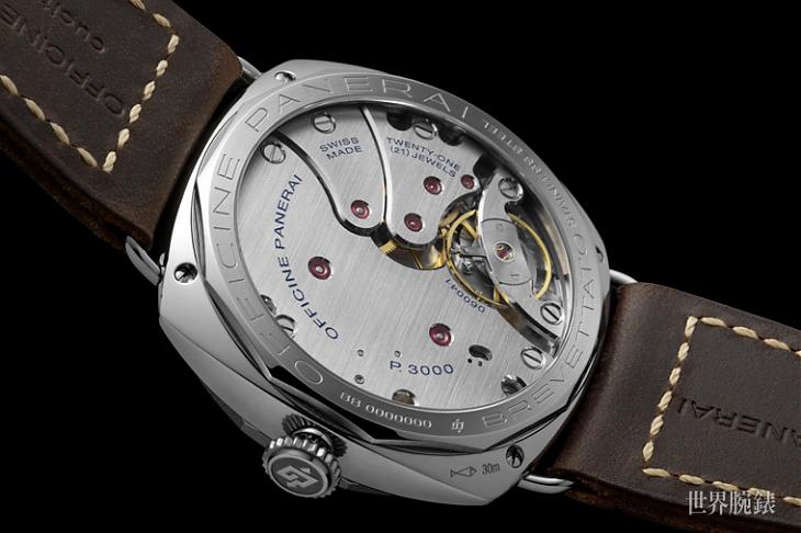 ▲2017年復刻的Radiomir 3 Days Acciaio搭載P.3000手上鍊機芯,其16½法分大尺寸隱隱有早期軍錶機芯的風範,但在三日鍊以及時針快調設計上,則展現出屬於現代的精進工藝。