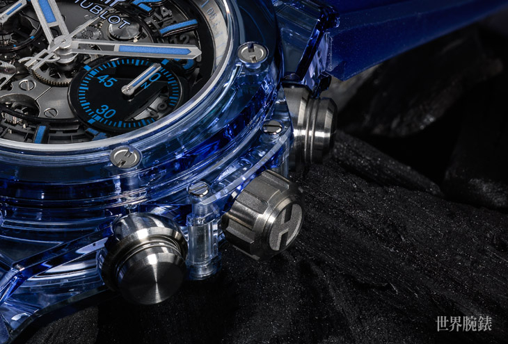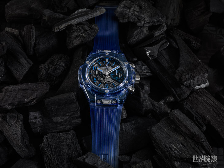 ▲宇舶於2016年開始推出以藍寶石水晶打造外殼的腕錶作品,有別於他廠只推過出非常少量的純透明設計,宇舶先前就曾開發出黑色透明錶殼,來到2017年更將顏色擴展至藍或紅色透明的新境界。