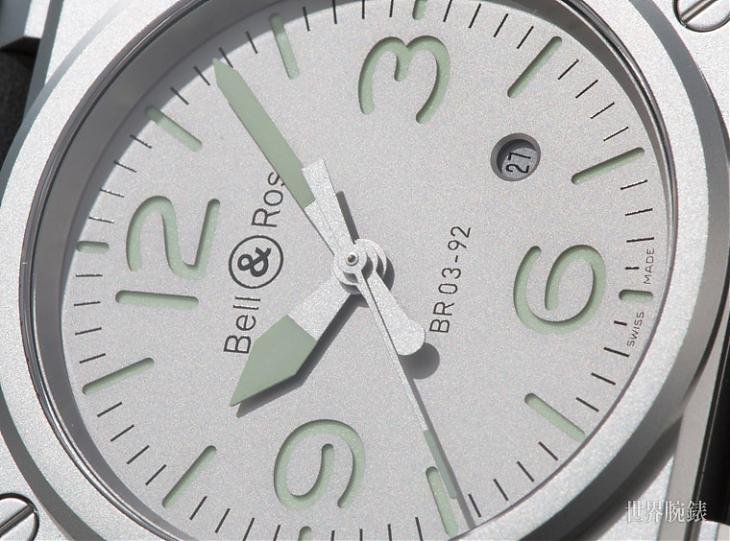 以飛行錶聞名的BR,這次在指針上採用的螢光塗層是Superluminova®塗層,Superluminova® C3是平常用於照亮機場跑道的顏色,這種超磷光在黑暗中可以持續相當久的一段時間,因此BR這款錶也是或多或少地將自家飛行錶淵源的DNA承傳於設計之中,搭配面盤的磨砂銀面光澤,在微弱光線的環境使用,更擁有獨特的風韻。