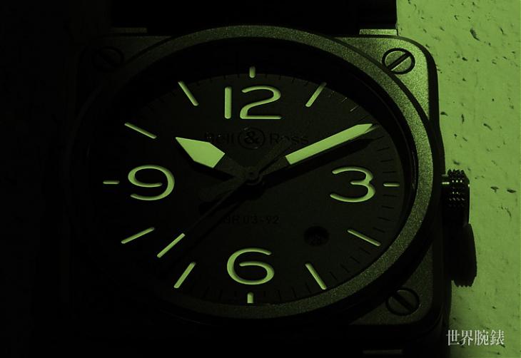 ▲以軍錶作為自家風格的BR,在這種黑暗環境下所採用的螢光塗層絕對不輸給其他品牌,採用照亮機場跑道的Superluminova® C3螢光塗層,可以在黑暗環境下維持相當久的亮度。