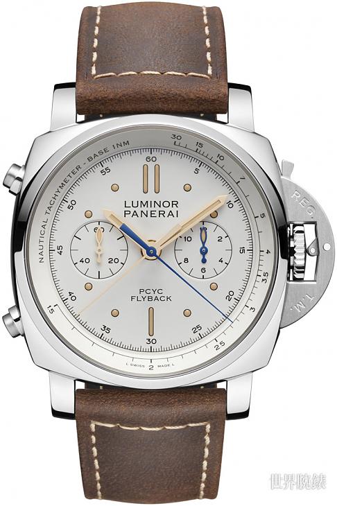 不鏽鋼材質/P. 9100自動上鍊機芯/時、分、小秒顯示/飛返計時碼錶功能/藍寶石水晶鏡面/防水100米/錶徑44mm/參考價:NT$ 401,000