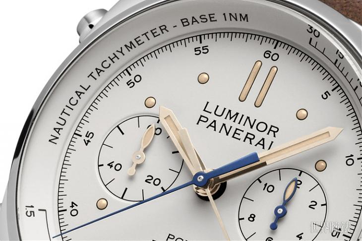 這款PAM00654是PANERAI沛納海2017年版的古典帆船賽紀念款,這次推出的一共有三款,同樣搭載了自製的P. 9100系機芯,不過兩款是標準的計時碼錶,一款搭載的是具備了倒數計時功能的9100/R,而這款乃是兩款計時碼錶之一。兩款計時碼錶的差別主要在於面盤,除了一黑一白之外,細部元素的樣式也有差異,而對於沛納海迷來說,這款654的版本應該是更具吸引力的。