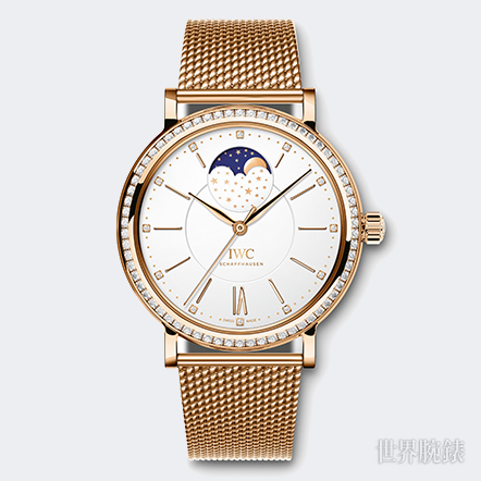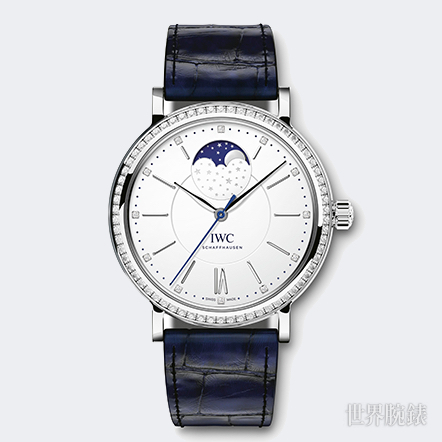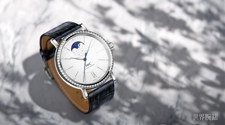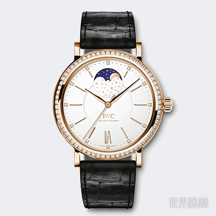 IWC萬國錶推出了全新柏濤菲諾月相錶,37毫米的錶殼尺寸適中剛好,一共推出四種版本,包括兩只不鏽鋼款及兩款玫瑰金,其中三款更是在錶圈鑲嵌了66顆鑽石。