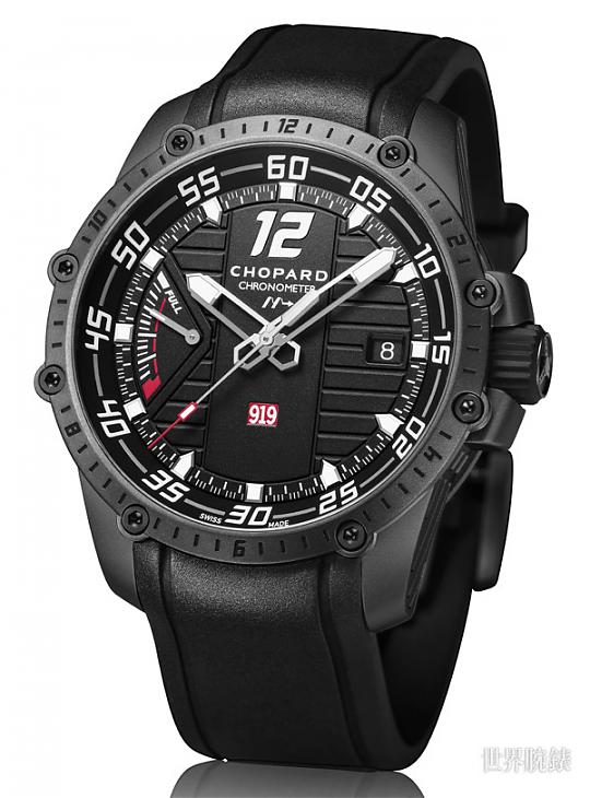 蕭邦打造Superfast計時碼錶所用的材質與保時捷919擁有許多相似之處。保時捷919的底盤由鋁和碳纖維的複合材料製成,以確保最大的亮度和硬度。而這只Superfast計時碼錶也以超輕盈又防刮的鈦金屬材質製成直徑45毫米的錶殼。機芯部分,它搭載01.11-M自動上鍊機芯,其震頻高達8赫茲,且具有長達60小時的動力儲存。黑色面盤上,三點鐘設有日期顯示,8點鐘~10點鐘位置則是動力儲存顯示,在6點鐘方還有一個清晰易見的紅色的保時捷919 Logo。錶圈上也鑲嵌八個黑色PVD打造的旋入式螺釘,看上去鮮明又帥氣。 錶帶部分是橡膠製成,如919的巨大光滑輪胎,具有均勻的表面,增強了牽引力和性能。
