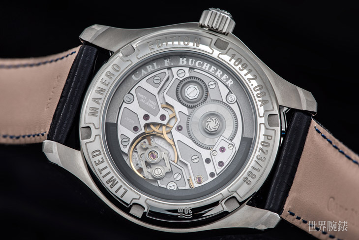 寶齊萊Manero Power Reserve搭載品牌自製的CFB A1011自動上鍊機芯,這枚從品牌另一枚CFB A1000機芯延伸的機芯,是具備品牌許多專利設計的機芯,像是將自動盤放在機芯的邊緣運轉,它同時具備中心自動盤動能傳動到整個機芯,以及微型自動盤不遮住機芯全貌的兩項優點融於一身。即便周邊式自動盤最大的缺點會面對避震效能不好的問題,但寶齊萊藉由開發出高效能Dynamic Shock Absorption動力避震器解決這項問題。A1011機芯還擁有獨到設計的防偽功能,品牌與Mimotec SA合作,用獨特雷射雕刻在機芯上簽名,此種技術需要經由精密計算、奈米工程、電鍍、雷射雕刻等工序,而且肉眼看不出來,必須透過雷射筆的光線照射,才會反射出品牌標誌。