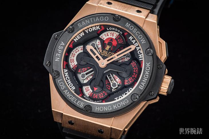 ▲回歸錶款實用功能來討論,在GMT功能上更多了超過十個時區顯示的King Power Unico GMT,其實正突顯出宇舶的品牌特色,看他們家的錶常常覺得是從外星球來的原因,正是因為宇舶常常打破錶壇的正規設計,而採用前所未見的設計方式重新安排機芯結構。