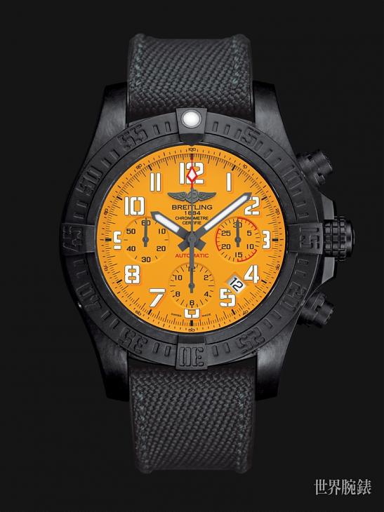 百年靈復仇者颶風腕錶以全球首創的革新材質Breitlight®打造它的直徑45毫米錶殼,Breitlight®材質有著諸多特點,同時涵蓋了堅固與輕盈的兩大特色。機芯部分,它搭載百年靈自製01自動上鍊機芯,該枚機芯有著不少於70小時的動力儲存。外觀方面,這只復仇者颶風腕錶新穎的外表下流露出剛勁有力的技術性風貌,通過白色航空模製數字時標相映成輝的黃色或黑色面盤,以及結合橡膠和超級耐用的Military軍用纖維面料的獨創錶帶,打造出別具風格且充滿極限感的面貌。