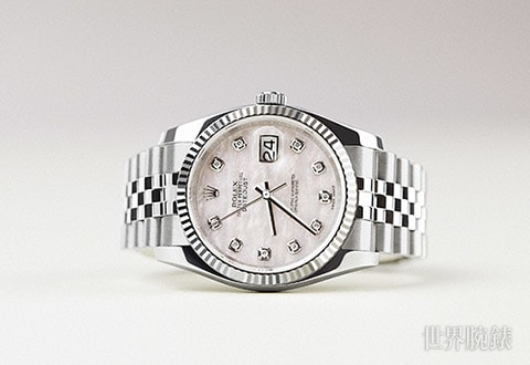 白金、不鏽鋼材質/3135自動上鍊機芯/時、分、秒、日期顯示/藍寶石水晶鏡面/防水100米/錶徑36mm